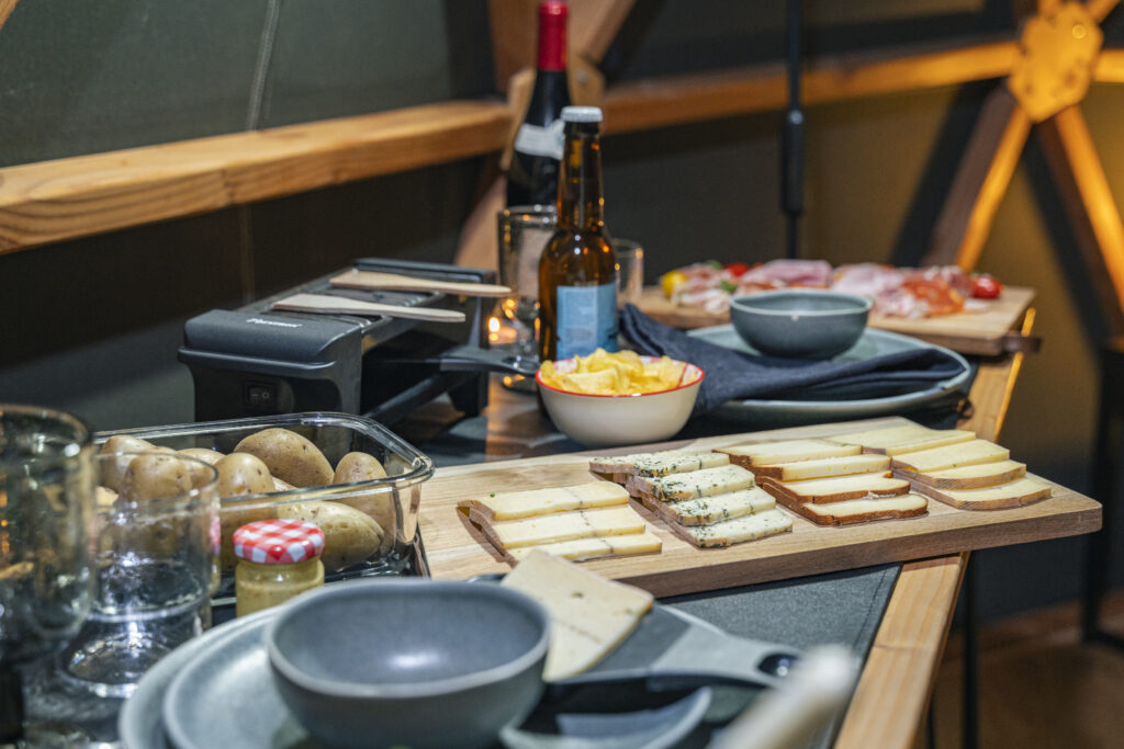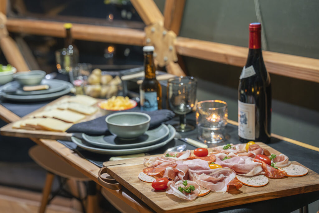 Dans les dômes et le chalet, les petits déjeuners sont proposés en supplément au tarif de 10€ par personne et par jour, et sont composés de :